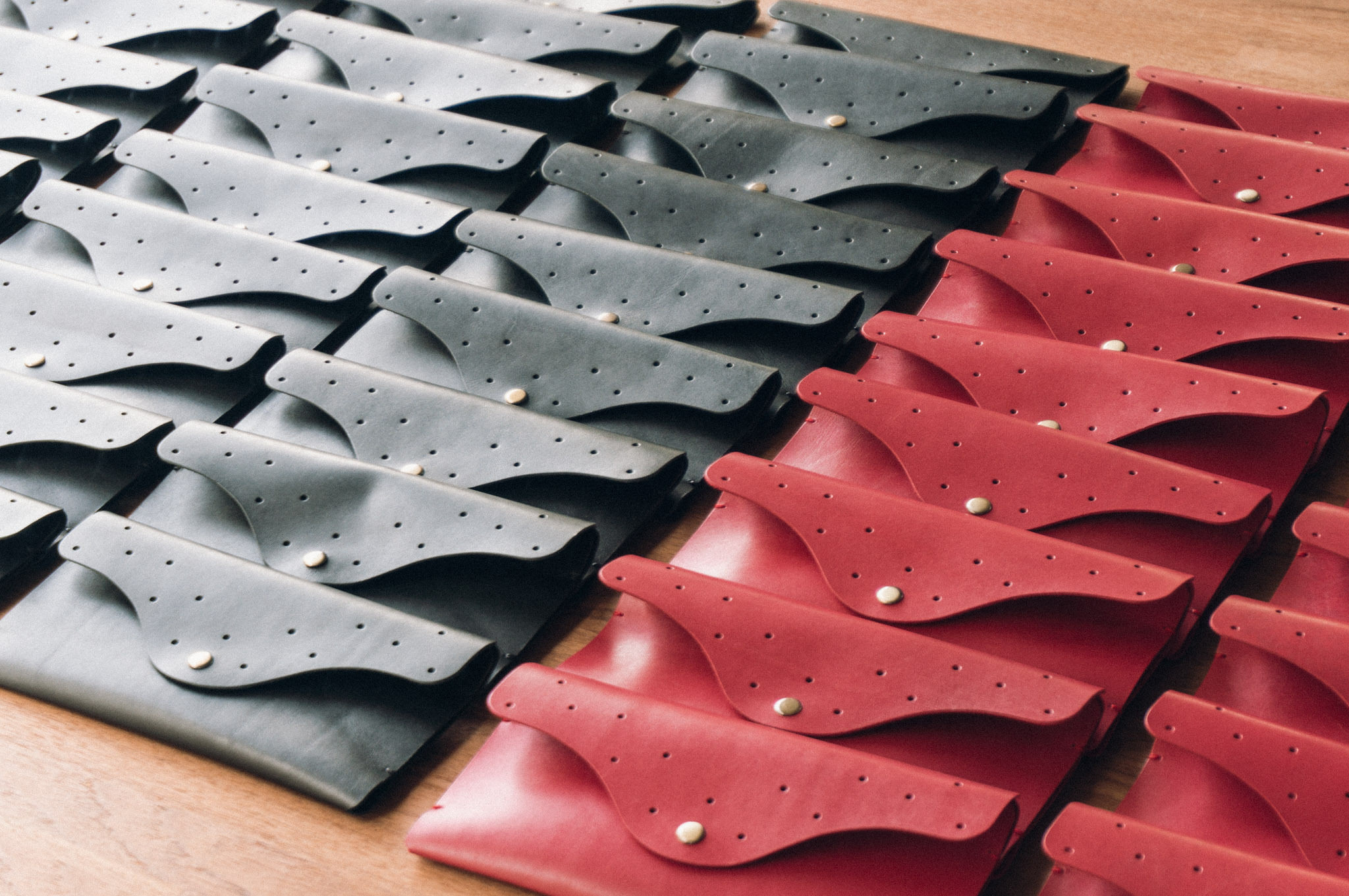 感謝臺中國家歌劇院邀約合作,選用手感溫潤的半植鞣皮革,以紅、藍、黑三種沉穩色調,展現觀賞者的獨特風格,外型則以流暢弧線,勾勒出歌劇院的壺中居線條。