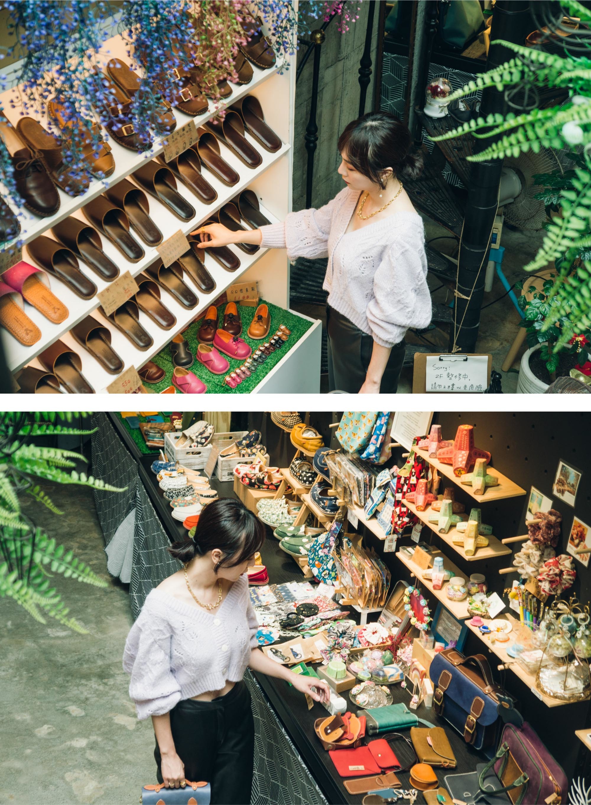 在走進店門後會發現除了 Demo Space 的皮革製品之外,同時也進駐了許多櫃位販售著各式各樣的手作商品。