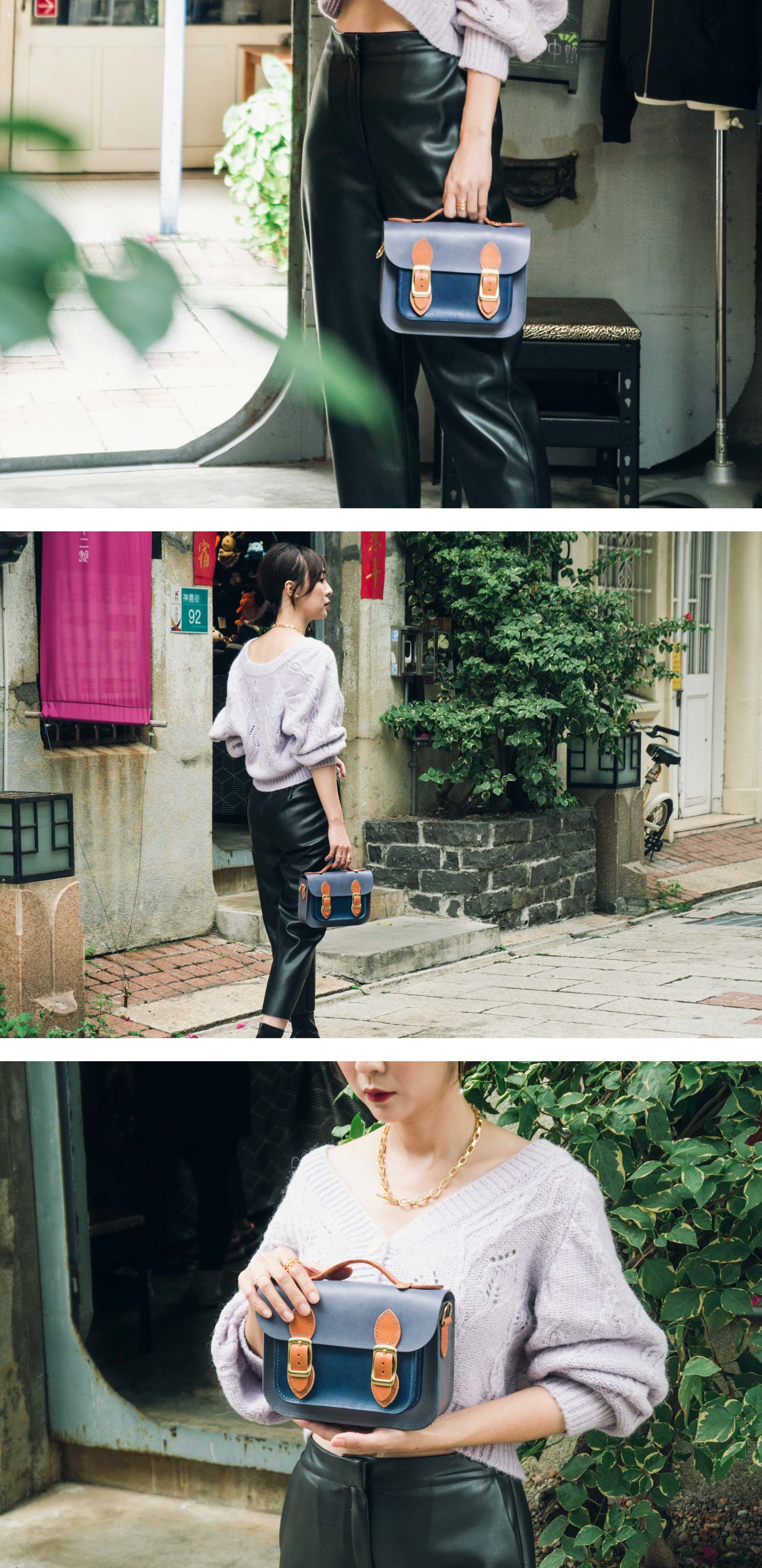 工作室最熱門的 9 吋劍橋包,皮革部件皆可自由選色搭配。