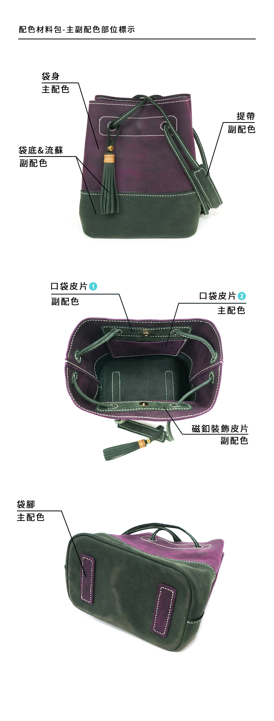 DIY材料包 真皮質感拼接色水桶包 附流蘇 |M1-055
