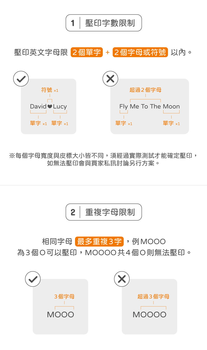 字母限制會隨著皮標大小而改變,有任何需求都可以與我們私訊討論。