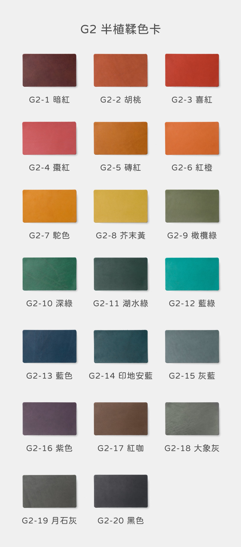 歡迎選用其他顏色訂製,若無顏色需求,將一律以〝G2-7 / 駝色〞為您製作。