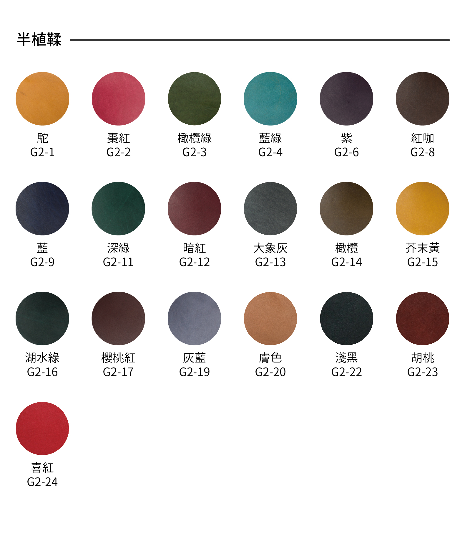 歡迎選用其他顏色訂製,若無顏色需求,將一律以〝G2-1 / 駝色〞為您製作。