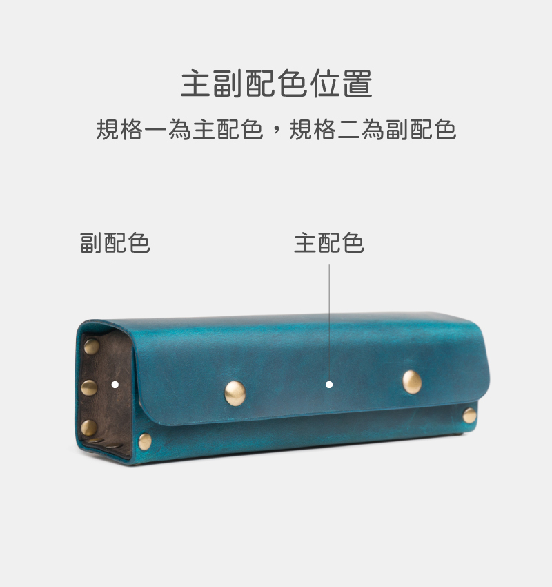 不大也不小的容量正好能放進 15 公分的尺、美工刀等基本工具,厚實的皮革比起布料更能防止尖銳的工具穿出,只要闔上帶走就能隨時在異地上工,防止突如其來的靈感溜走!