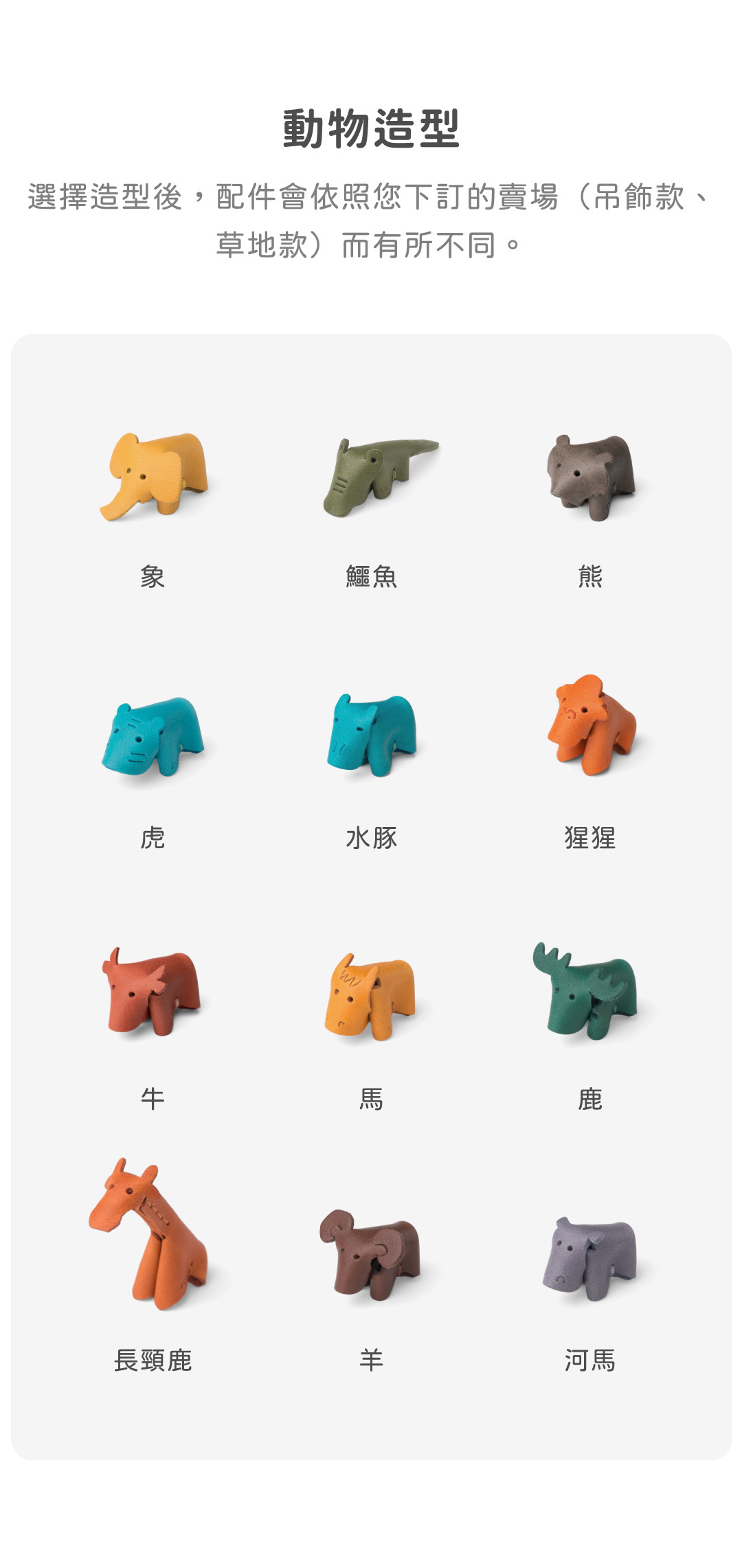 .每種動物皆可選擇吊飾款、草地款。此賣場為吊飾款,如需草地款請至草地款賣場購買。