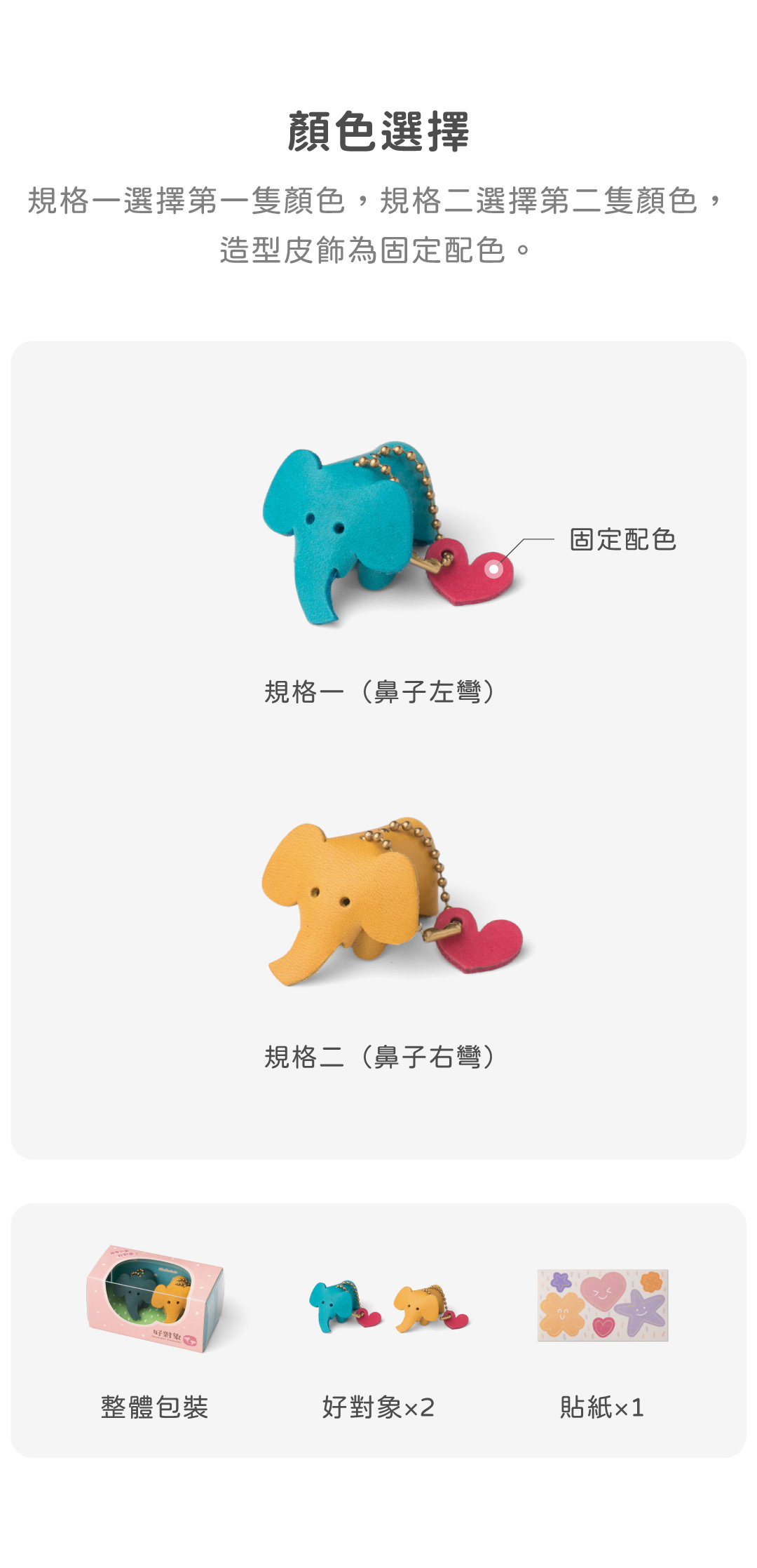 成雙成對的小象,象徵著彼此的默契與陪伴,無論是戀人、摯友,還是家人,都是生命中不可或缺的「好對象」。一隻留給自己,另一隻送給重要的人,讓這份祝福成為彼此之間最純粹的愛意與承諾。無論相隔多遠,這對小象都會提醒你們,珍貴的情感始終相伴。